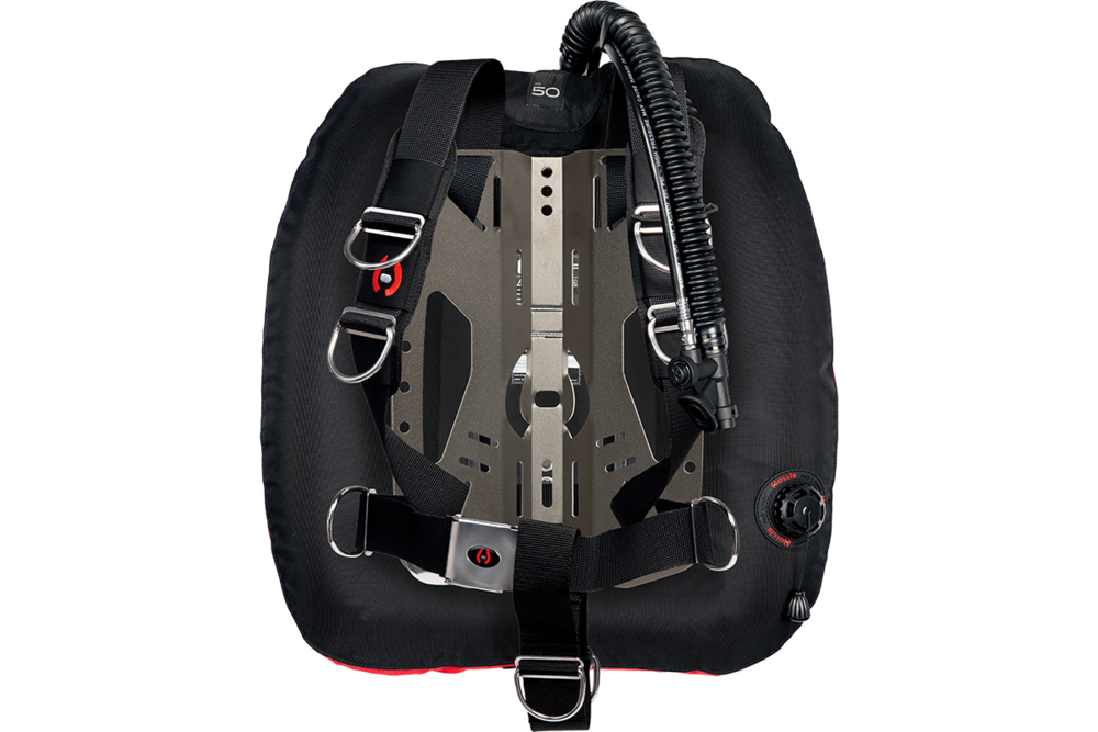 Rounding out the DT system is our new DT50 doubles wing and, with a radical redesign, it’s ideal for various sized double cylinders and colder waters. The DT50 also promotes greater lift towards the divers hips for better horizontal trim.